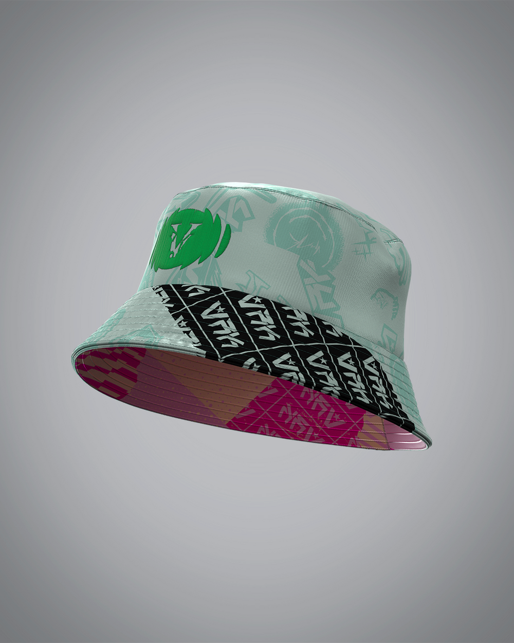 Le bob double face Vrunk allie style et fonctionnalité avec ses deux coloris complémentaires : une face rose coordonnée au maillot Chewing Gum et une face vert d'eau harmonieuse avec le maillot Mint Forest.
