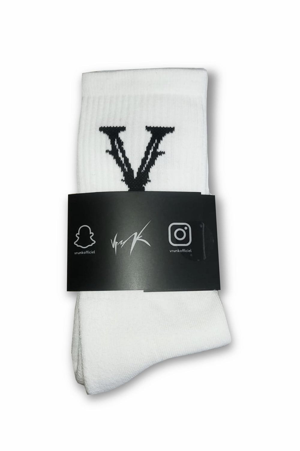 Le pack se compose de 2 paires de chaussettes. Une paire de couleur blanche avec notre logo V au dessus de la cheville et notre logo Signature au niveau des orteils. Et une paire noire avec notre logo Signature au dessus de la cheville et notre logo V au niveau des orteils.